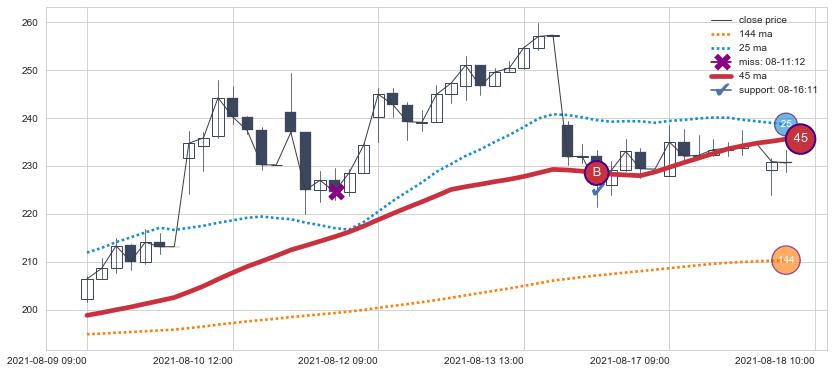 ⚂ 2021-08-27 09:00:00-小时均线向下破位,2021-08-30 09:00:00-小时重新上穿突破均线,均线支撑再次生效