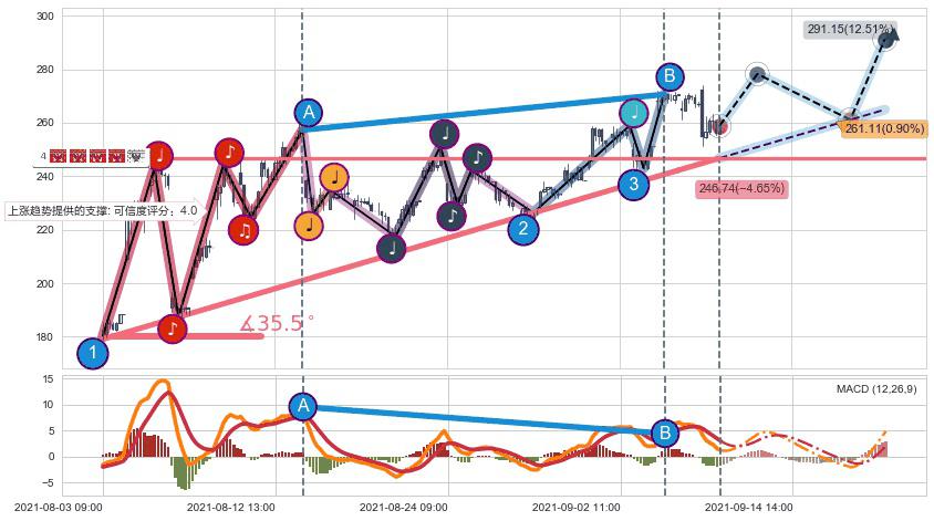 ➣ 预测:2021-09-17 10:00,【试探支撑】稳定目前上涨趋势的前提下,预测价格:261.11