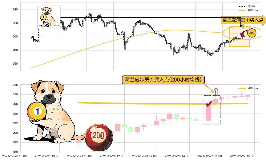 ⚀ 2021-12-27 10:00:00-小时显现 葛兰威尔均线 200小时均线 第买①入点 走势反转见底信号,后市看涨,买进信号