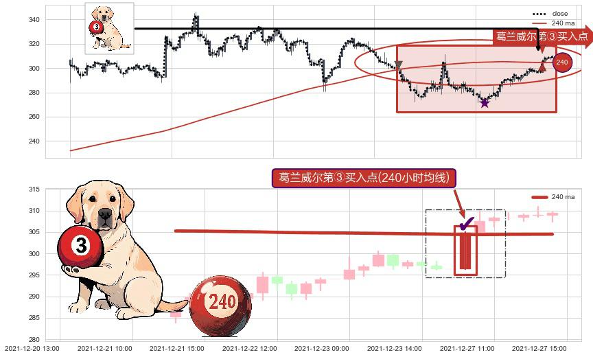 ⚀ 2021-12-27 09:00:00-小时显现 葛兰威尔均线 240小时均线 第③买入点 上升趋势的中继信号,后市看涨,买进信号