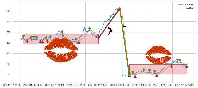 11-18 14:00至05-20 10:00 慢线与快线多次接触,存在上下穿越,有缠绕