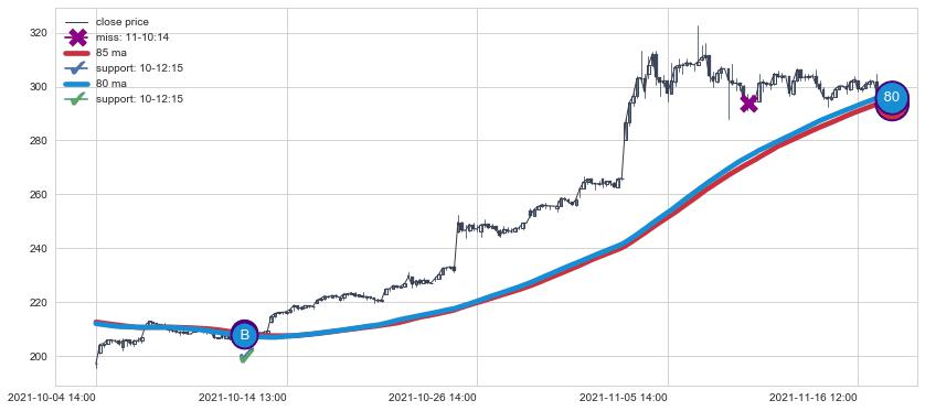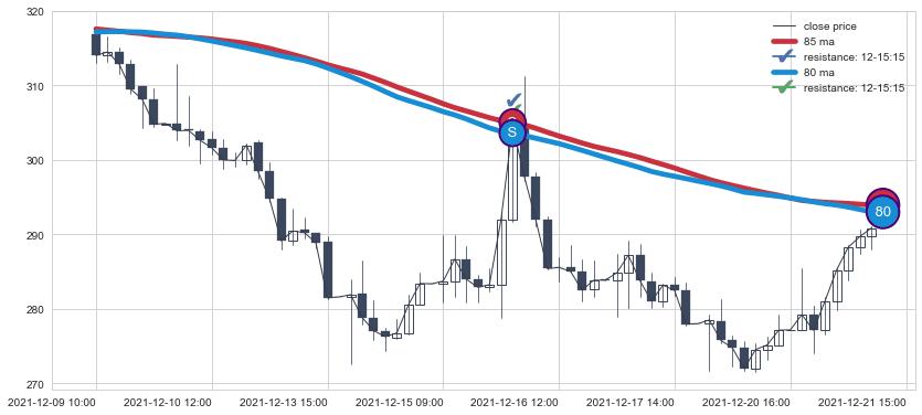 ⚂ 2021-12-13 09:00:00-小时均线向下破位,2021-12-27 09:00:00-小时重新上穿突破均线,均线支撑再次生效