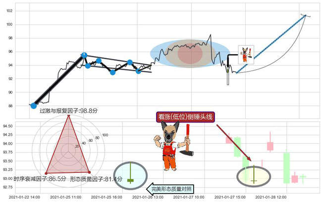➢ 🕰 价格走势在2021-01-27 16:00:00至2021-01-27 16:00:00期间形成看涨(低位)倒锤头线,残存影响值:6.83