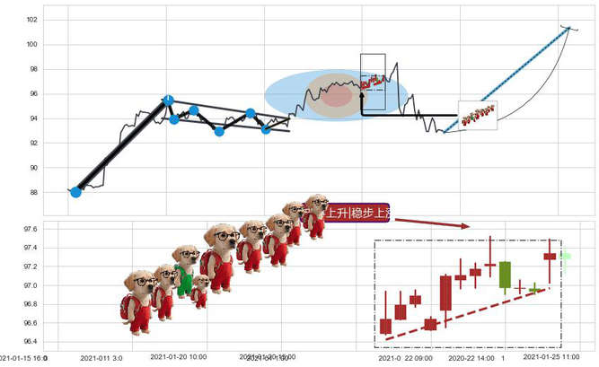 ➢ 🕰 价格走势在2021-01-21 14:00:00至2021-01-25 09:00:00期间形成冉冉上升|稳步上涨,残存影响值:1.73