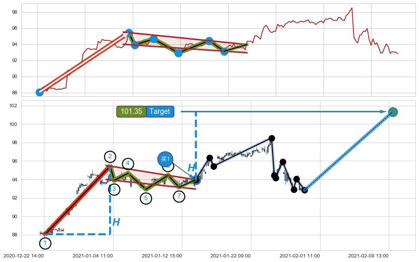 ➣ 最小中继整理涨幅→𝐇: 7.39 (𝐇旗杆的长度:旗杆起点→顶点)