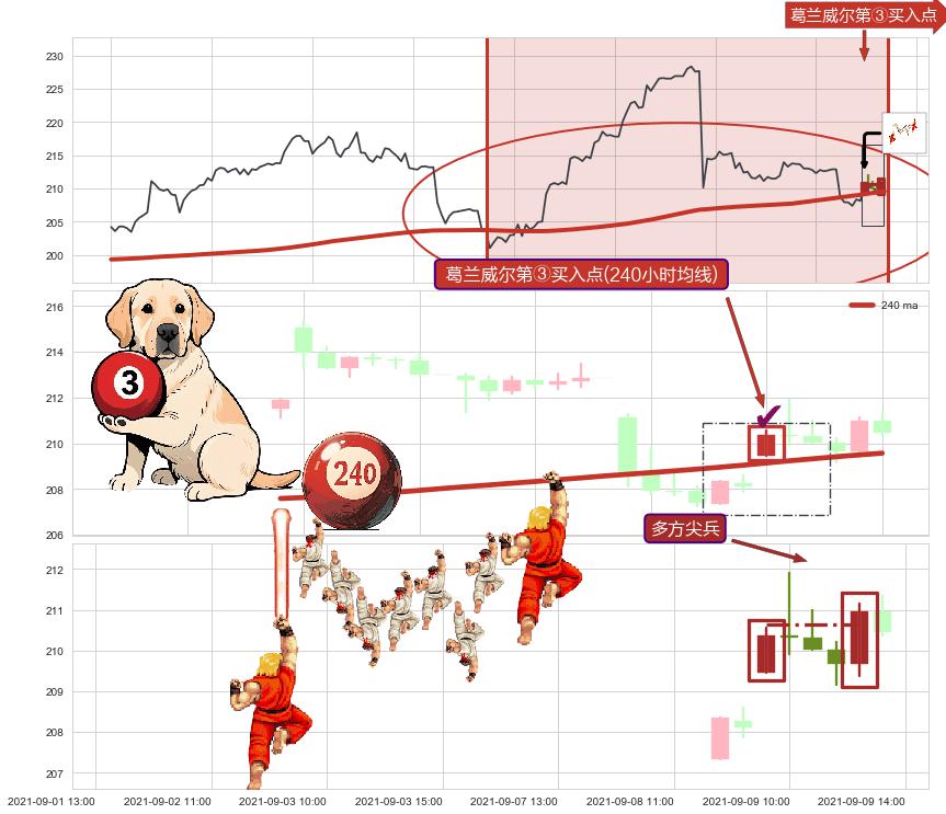 ➣ 收盘价(09-03:10: 213.26 )→回踩→第二根k线低点(09-03:09: 213.28 )