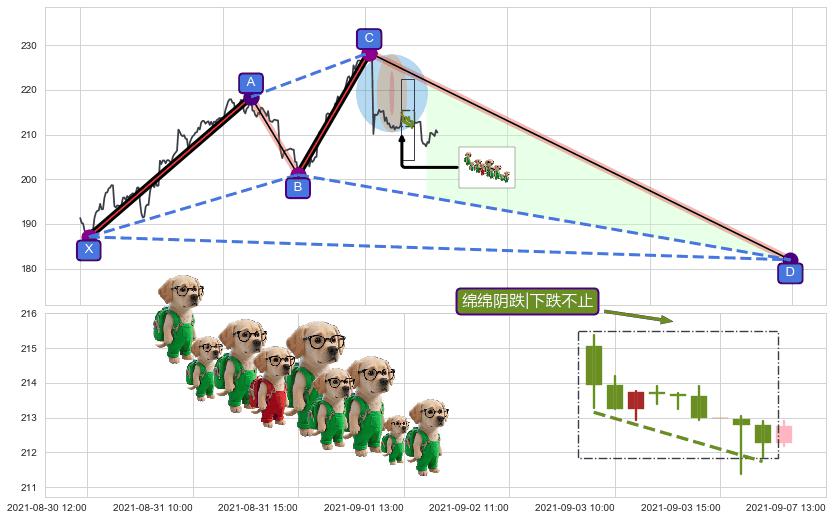 | 2 🅚:【死亡谷】卖出点 ➕ 📡:谐波鲨鱼猜想c点拉升击穿越过b点后泄力性下沉下跌(均值回复) ☞ 看空信号 ⇥ 【均线】交织【图形】⇥ 综合量化分数: 38 | > |