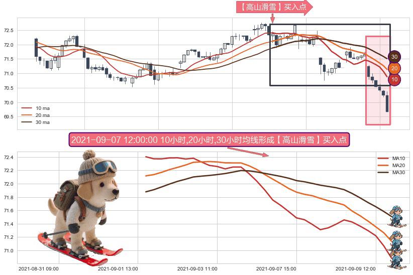 ⚀ 2021-09-01 14:00:00小时-2021-09-09 14:00:00小时显现 10小时-20小时-30小时均线 【高山滑雪】买入点 看多信号,后市看涨,买入