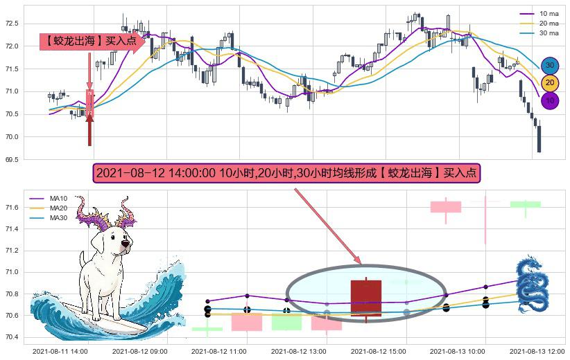 ⚀ 2021-08-12 14:00:00小时显现 10小时-20小时-30小时均线 【蛟龙出海】买入点 看多信号,后市看涨,买入