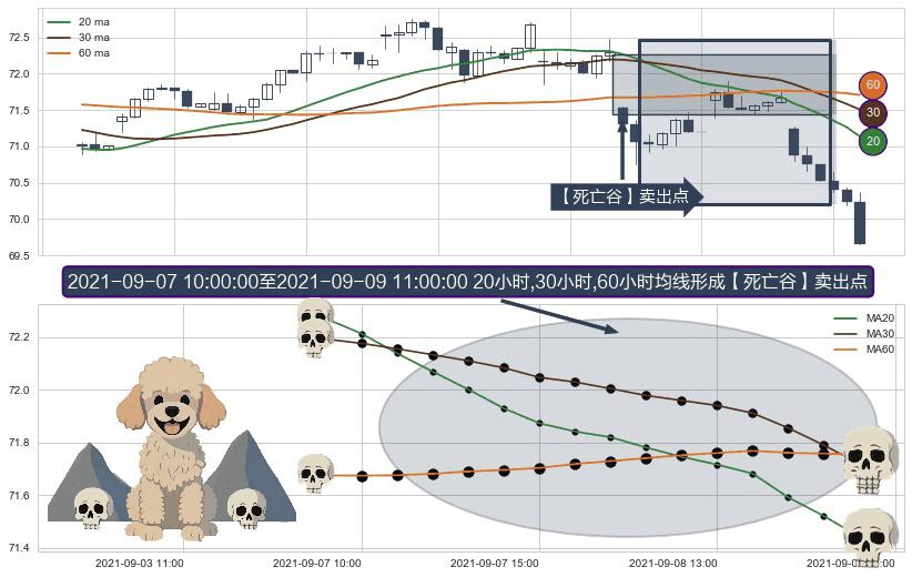 ⚀ 2021-09-07 11:00:00-小时至2021-09-09 11:00:00-小时显现 20小时-30小时-60小时均线 【死亡谷】卖出点 看空信号,后市看跌,卖出
