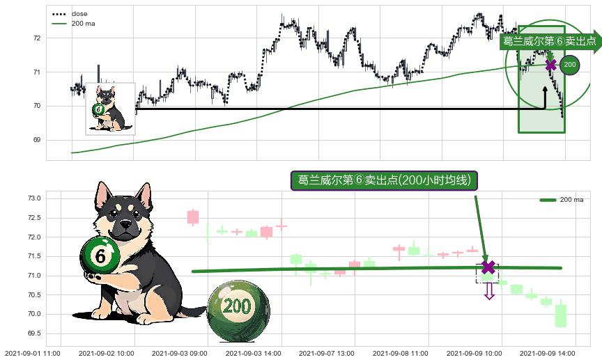 ⚀ 2021-09-09 09:00:00-小时显现 葛兰威尔均线 200小时均线 第⑥卖出点 走势反转见顶信号,后市看跌,卖出信号