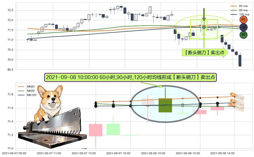 ⚀ 2021-09-08 10:00:00小时显现 60小时-90小时-120小时均线 【断头铡刀】卖出点 看空信号,后市看跌,卖出