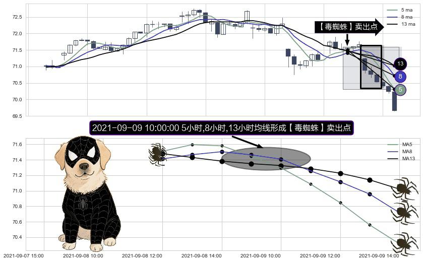 ⚀ 2021-09-09 10:00:00小时显现 5小时-8小时-13小时均线 【毒蜘蛛】卖出点 看空信号,后市看跌,卖出