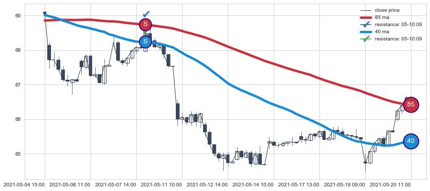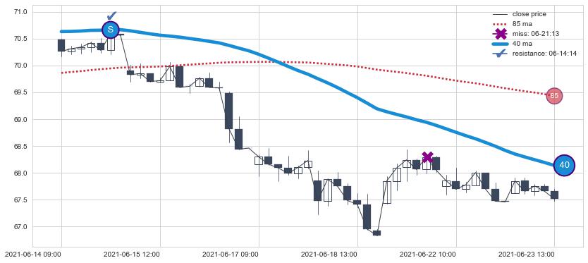 ⚃ 在破位点附近ma走势明显平稳迹象,稍后的走势中ma下垂迹象也出现,信号【可信度中等偏上】