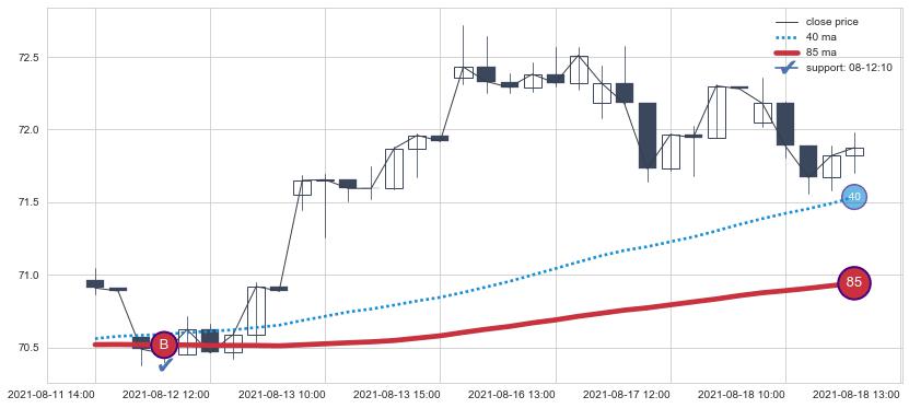 ⚂ 2021-08-12 14:00:00小时突然冒出一根大阳线,一下子顶穿三条均线且收盘价收在各条均线之上
