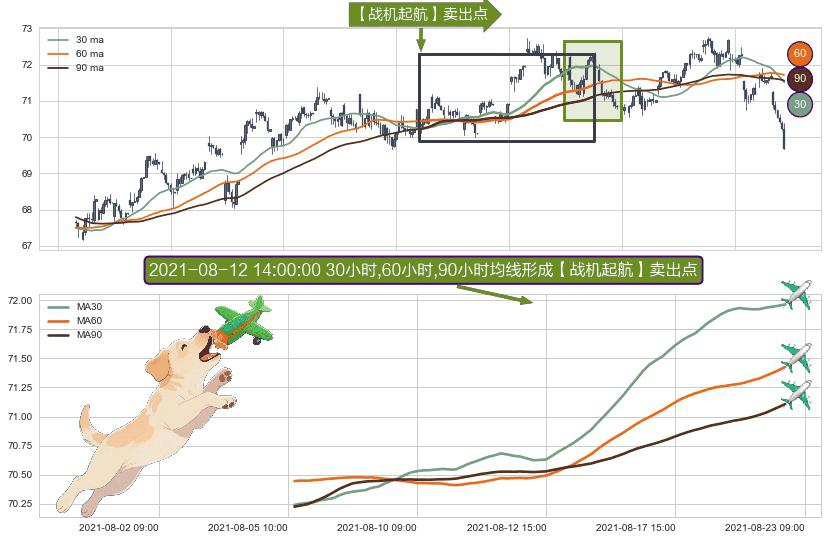 ⚀ 2021-08-05 11:00:00小时-2021-08-20 13:00:00小时显现 30小时-60小时-90小时均线 【战机起航】卖出点 看空信号,后市看跌,卖出