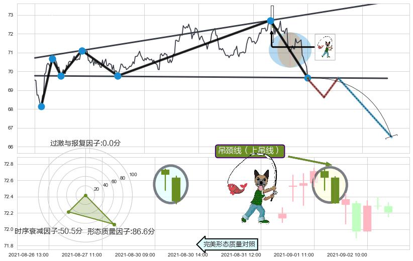 | 21 🅚:吊颈线(上吊线) ➕ 📈:趋势线上涨趋势原支撑已出现破位,猜想原支撑已变为阻力位(大周期均值回复) ☞ 看空信号 ⇥ 【🅚线】交织【图形】⇥ 综合量化分数: 49 | > |
