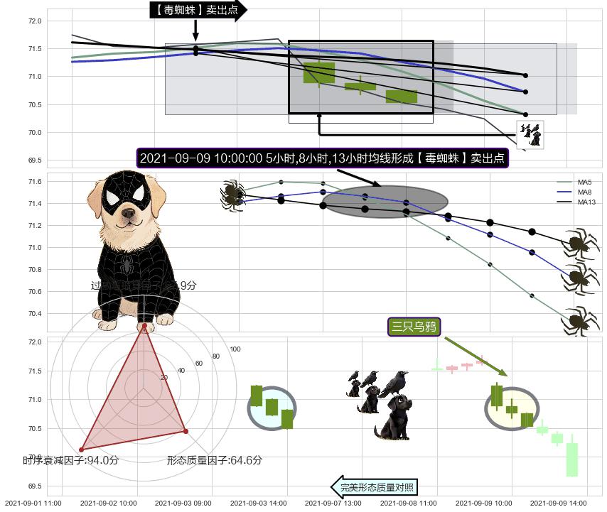 从2021-09-02 14:00至2021-09-09 14:00,共包含26个小时,阶段股价下跌-4.21%,阶段股价变动位移路程比: 1 : 1.9,2021-09-07 09:00向↘︎形成缺口,跳空下跌-1.37%˚