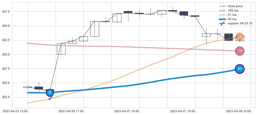 上涨趋势04-23 13:00-04-28 12:00,均线40确认关键支撑1处