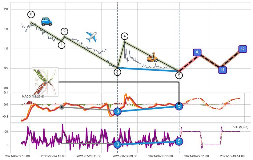 | 2 🅚:降势受阻 ➕ 🌊:波浪理论猜想下跌浪5已形成,猜想后续形成abc反弹上涨(均值回复) ☞ 看多信号 ⇥ 【🅚线】交织【图形】⇥ 综合量化分数: 52 | > |