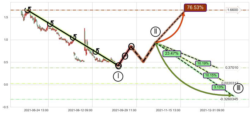 ➢ 循环浪继续向下【最低】位置(01-14:11, -0.3260345),匹配聚类样本比例13.32%, 可能性概率3.13%