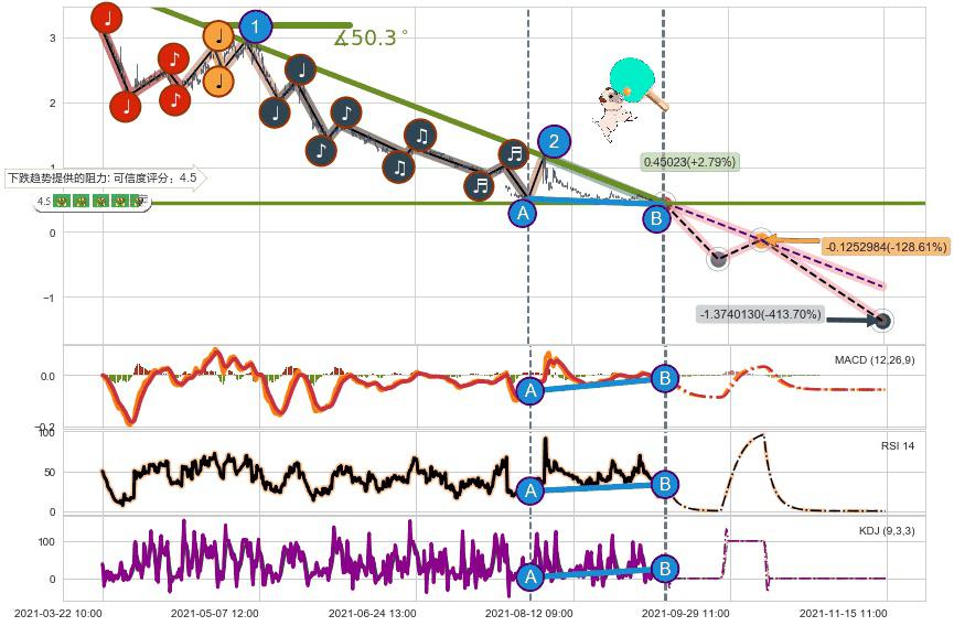 ➢ 预测:2021-09-27 11:00,【后劲十足】稳定目前下跌趋势的前提下,预测价格:-0.4230800
