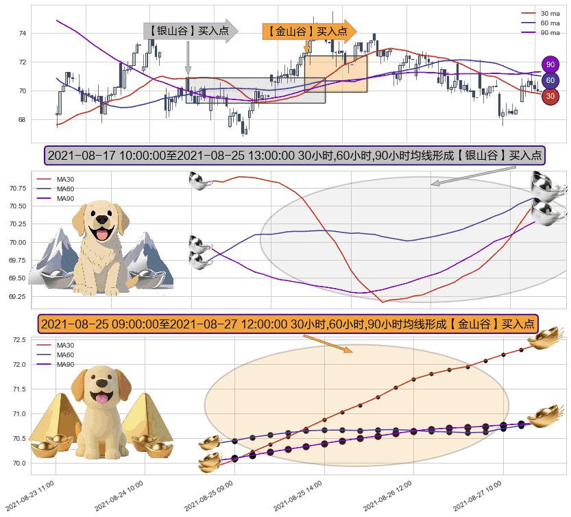⚃ 2021-08-25 10:00:00-小时至2021-08-27 12:00:00-小时显现 30小时-60小时-90小时均线 【金山谷】买入点 其再次确认了买入信号,可靠性更强,买入