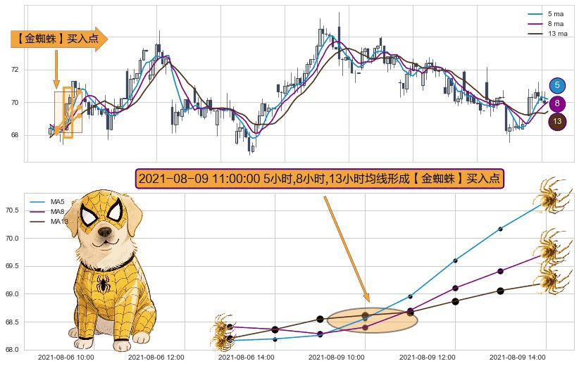 ⚀ 2021-08-09 11:00:00小时显现 5小时-8小时-13小时均线 【金蜘蛛】买入点 看多信号,后市看涨,买入