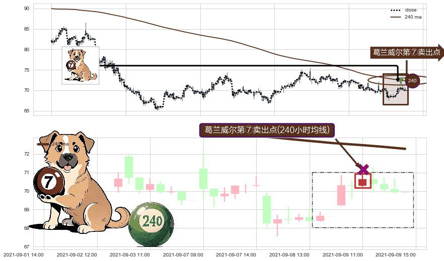 ⚀ 2021-09-09 11:00:00-小时显现 葛兰威尔均线 240小时均线 第⑦卖出点 下降趋势的中继信号,后市看跌,卖出信号