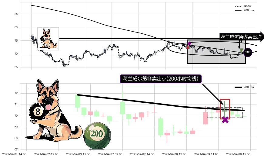 ⚀ 2021-09-09 12:00:00-小时显现 葛兰威尔均线 200小时均线 第⑧卖出点 下降趋势的中继信号,后市看跌,卖出信号