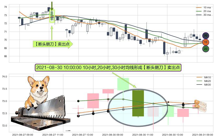 ⚀ 2021-08-30 10:00:00小时显现 10小时-20小时-30小时均线 【断头铡刀】卖出点 看空信号,后市看跌,卖出