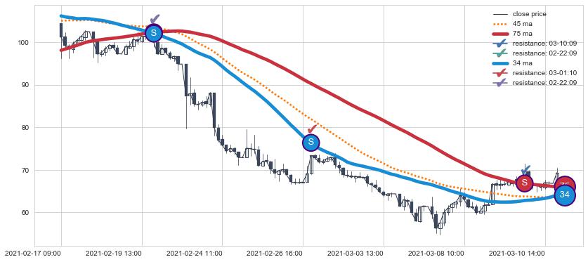 ⚄ 价格在均线遇到阻力后再次向下回落了【极短】距离, 第⑦卖出点 阻力效果【等待验证】