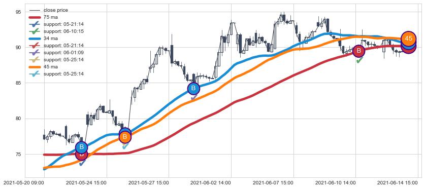 05-20 09:00至06-14 15:00 慢线与快线呈多头排列, 慢线与快线接触少,无缠绕