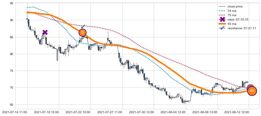 ⚂ 2021-08-27 14:00:00-小时均线向上突破,2021-09-09 12:00:00-小时重新下穿均线破位,均线阻力再次生效