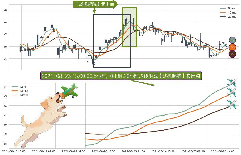 ⚀ 2021-08-19 14:00:00小时-2021-08-25 13:00:00小时显现 5小时-10小时-20小时均线 【战机起航】卖出点 看空信号,后市看跌,卖出