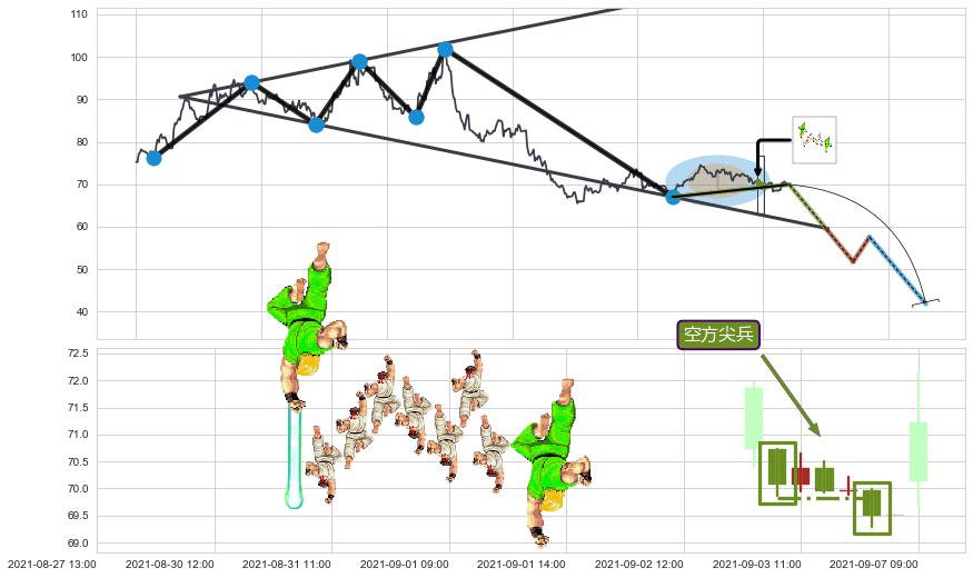 | 8 🅚:上探下跌 ➕ 📐:扩散三角反转猜想突破点临近,临近关键支撑位,预期下沉突破下跌 ☞ 看空信号 ⇥ 【🅚线】交织【图形】⇥ 综合量化分数: 42 | > |