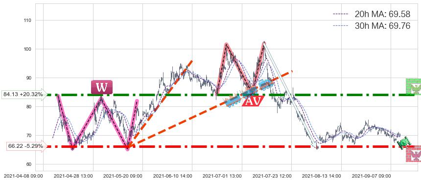 ♞ 20小时均线:69.58,30小时均线:69.76→ 快线<慢线