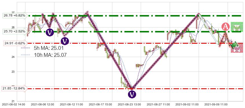 ♘ 阻力价格位25.70,可信任强度88.36%,距离最后交易2021-09-09 15:00形成的收盘价格25.07相差 +2.52%