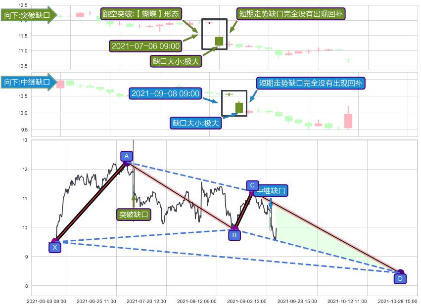 ➢ 【蝴蝶】形态 🔜 中继缺口 🔜 突破缺口 综合量化分数:36.32 【偏空】