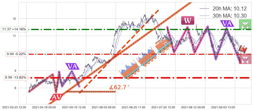 ♞ 20小时均线:10.12,30小时均线:10.30→ 快线<慢线
