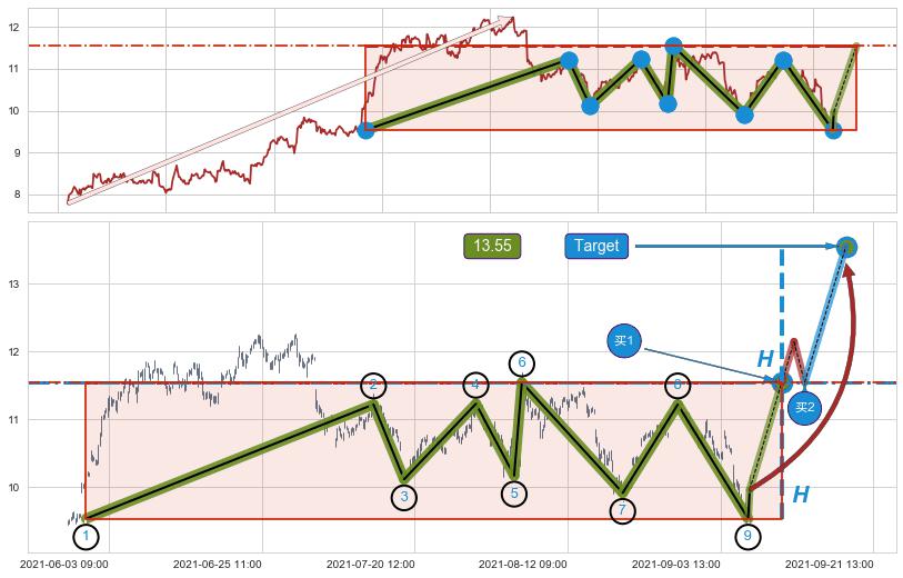 ➣ 最小中继整理涨幅→𝐇: 3.450 (𝐇旗杆的长度:旗杆起点→顶点)