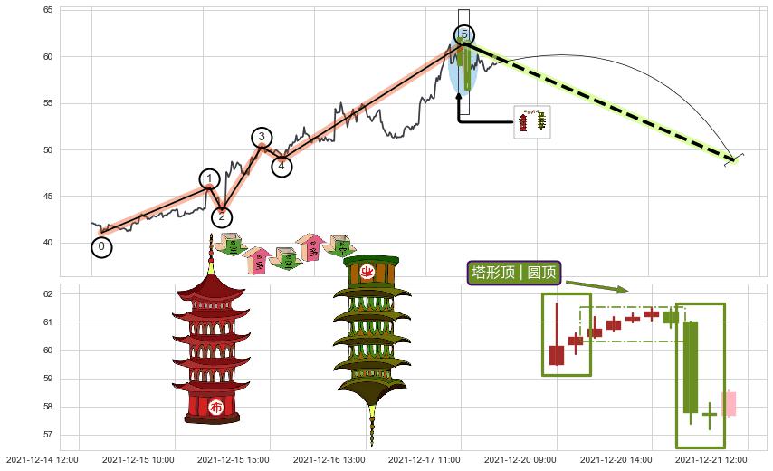 | 5 🅚:黄昏之星(夜星) ➕ 🌊:波浪理论猜想上涨浪5已形成,猜想后续形成回调abc下跌(均值回复) ☞ 看空信号 ⇥ 【🅚线】交织【图形】⇥ 综合量化分数: 43 | > |