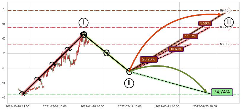 ➢ 大趋势走坏(跌破5浪起点位置)概率74.74%