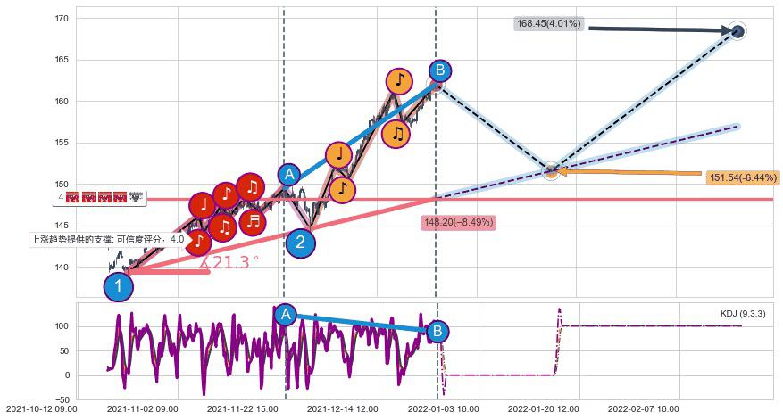 ➣ 预测:2022-02-17 14:00,【继续上扬】稳定目前上涨趋势的前提下,预测价格:168.45