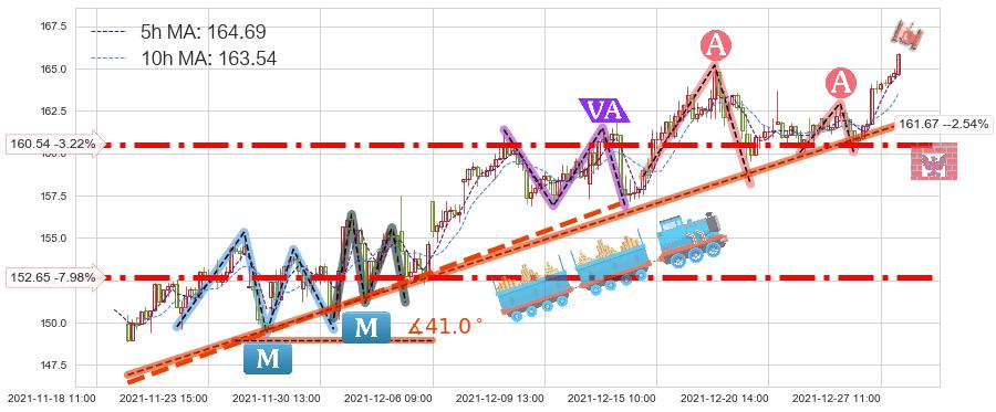 ♞ 5小时均线:164.69,10小时均线:163.54→ 快线>慢线