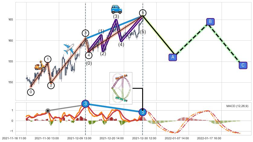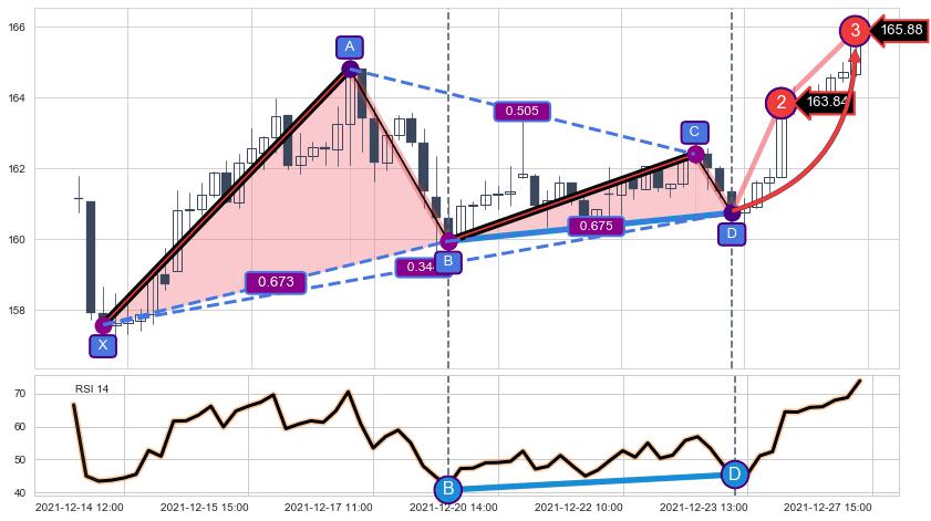 ➣ D点拟合预测价格166.75,距离最后交易收盘价格165.88相差 +0.52%