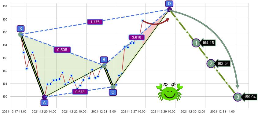 ➢ 接近预测D点位置, 随时警戒看跌【螃蟹】形态反转启动
