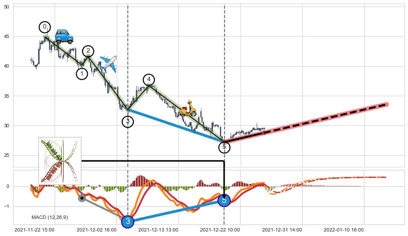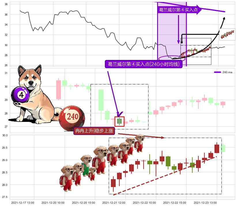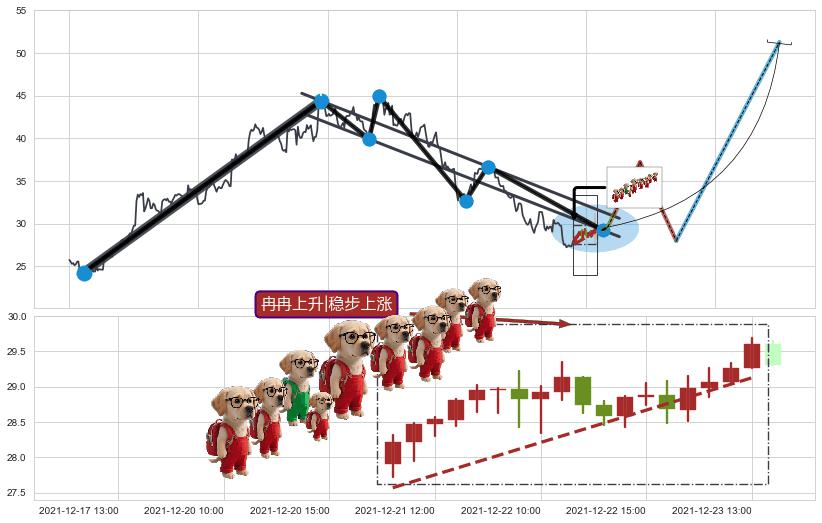 从2021-12-20 12:00至2021-12-27 15:00,共包含33个小时,阶段股价上涨8.48%,阶段股价变动位移路程比: 1 : 2
