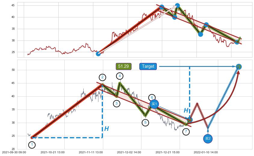 ➣ 最小中继整理涨幅→𝐇: 20.14 (𝐇旗杆的长度:旗杆起点→顶点)