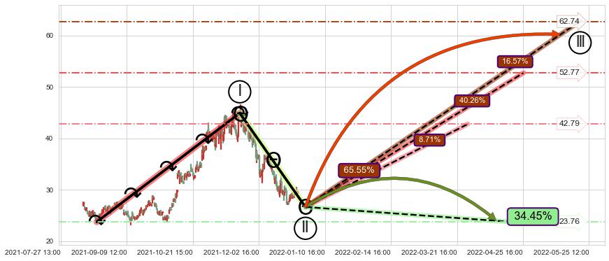 ➢ 循环浪继续向上【最高】位置(05-25:12, 62.74),匹配聚类样本比例25.29%, 可能性概率16.57%